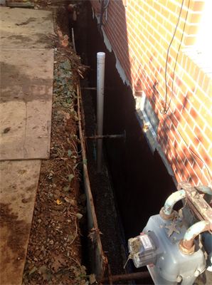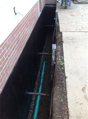 Basement waterproofing in progress